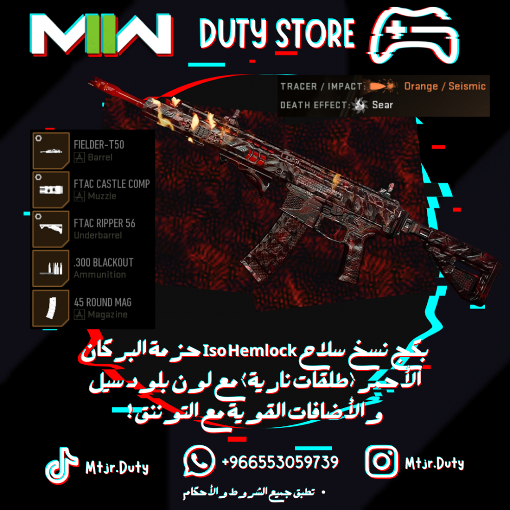 بكج نسخ سلاح Iso Hemlock حزمة البركان الأحمر (طلقات نارية) مع لون بلود سيل والأضافات القوية مع التوننق !