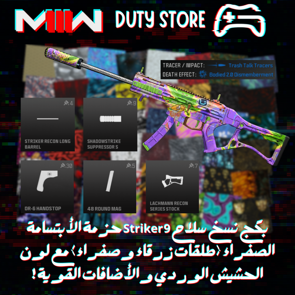 بكج نسخ سلاح Striker 9 حزمة الأبتسامة الصفراء (طلقات زرقاء وصفراء) مع لون الحشيش الوردي والأضافات القوية ! (جميع المنصات)