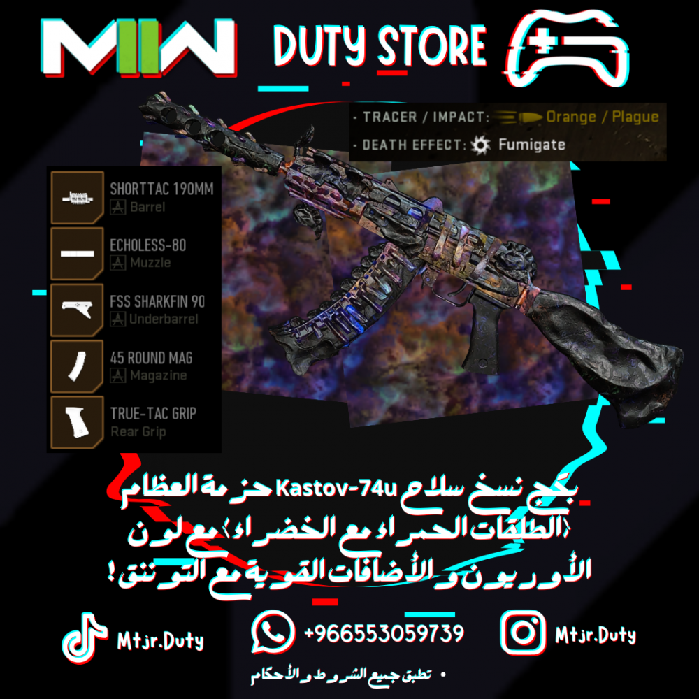 بكج نسخ سلاح Kastov-74u حزمة العظام (الطلقات الحمراء مع الخضراء) مع لون الأوريون والأضافات القوية مع التوننق !