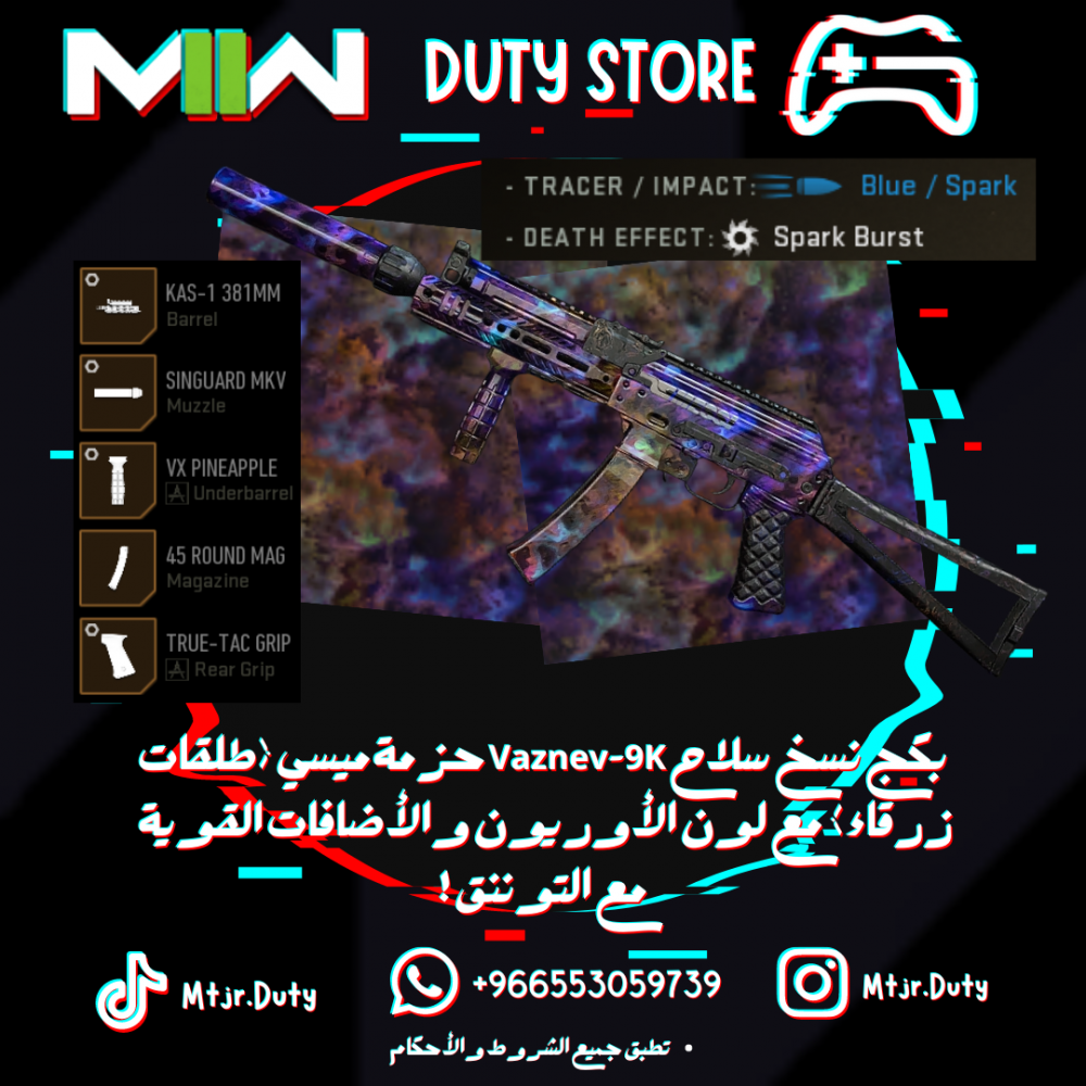 بكج نسخ سلاح Vaznev-9K حزمة ميسي (طلقات زرقاء) مع لون الأوريون والأضافات القوية مع التوننق !