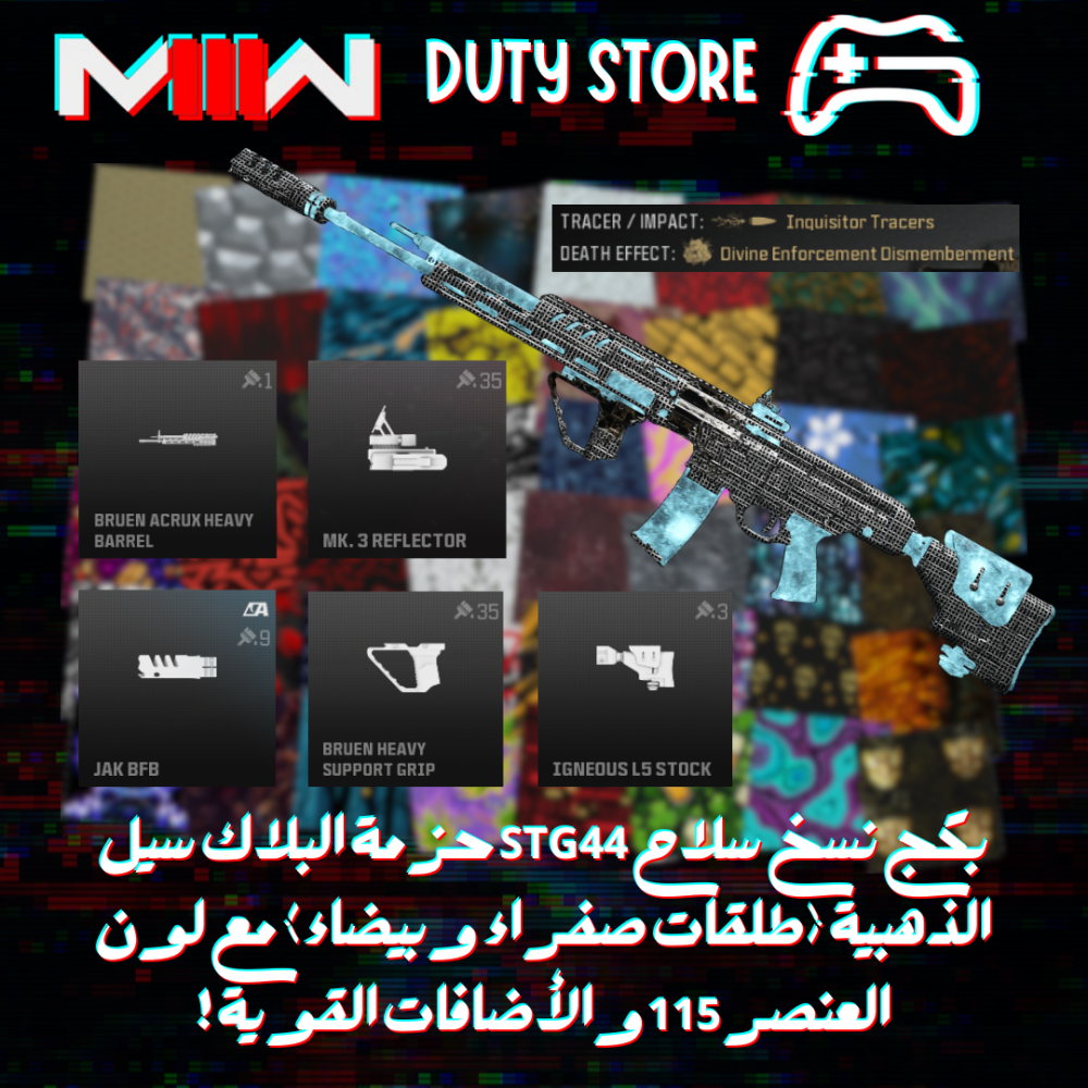 بكج نسخ سلاح STG44 حزمة البلاك سيل الذهبية (طلقات صفراء وبيضاء) مع لون العنصر 115 والأضافات القوية ! (جميع المنصات)
