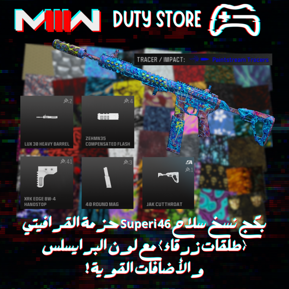 بكج نسخ سلاح Superi 46 حزمة القرافيتي (طلقات زرقاء) مع لون البرايسلس والأضافات القوية ! (جميع المنصات)