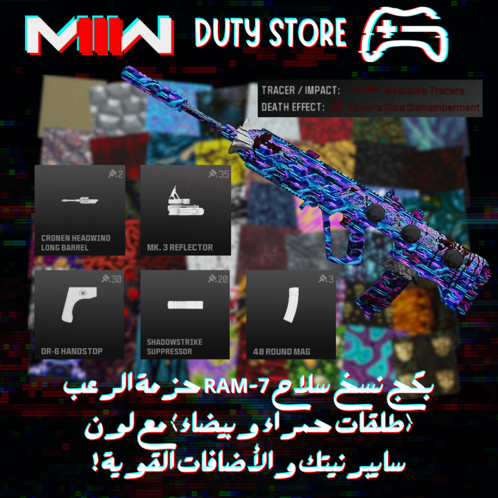 بكج نسخ سلاح RAM-7 حزمة الرعب (طلقات حمراء وبيضاء) مع لون سايبرنيتك والأضافات القوية ! (جميع المنصات)