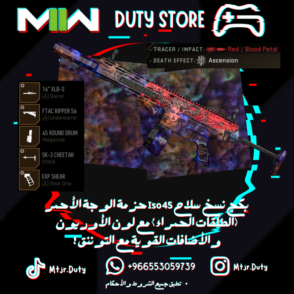 بكج نسخ سلاح Iso 45 حزمة الوجة الأحمر (الطلقات الحمراء) مع لون الأوريون والأضافات القوية مع التوننق !