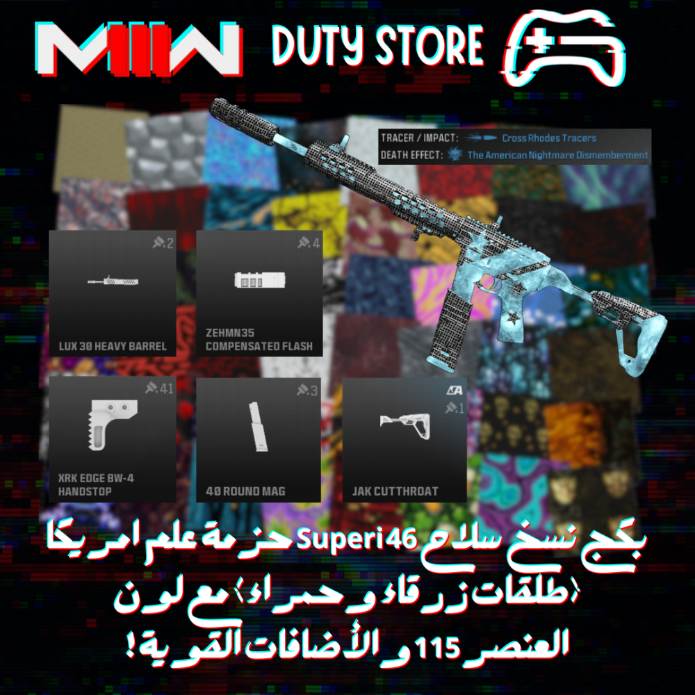 بكج نسخ سلاح Superi 46 حزمة علم امريكا (طلقات زرقاء وحمراء) مع لون العنصر 115 والأضافات القوية ! (جميع المنصات)