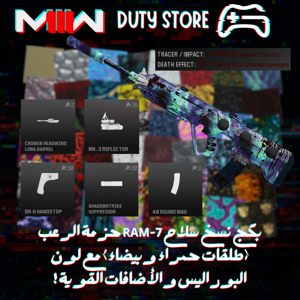 بكج نسخ سلاح RAM-7 حزمة الرعب (طلقات حمراء وبيضاء) مع لون البوراليس والأضافات القوية ! (جميع المنصات)