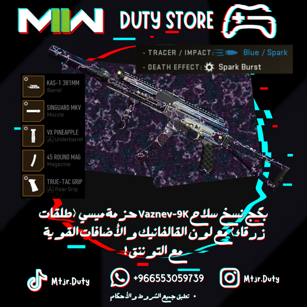 بكج نسخ سلاح Vaznev-9K حزمة ميسي (طلقات زرقاء) مع لون القالفانيك والأضافات القوية مع التوننق !