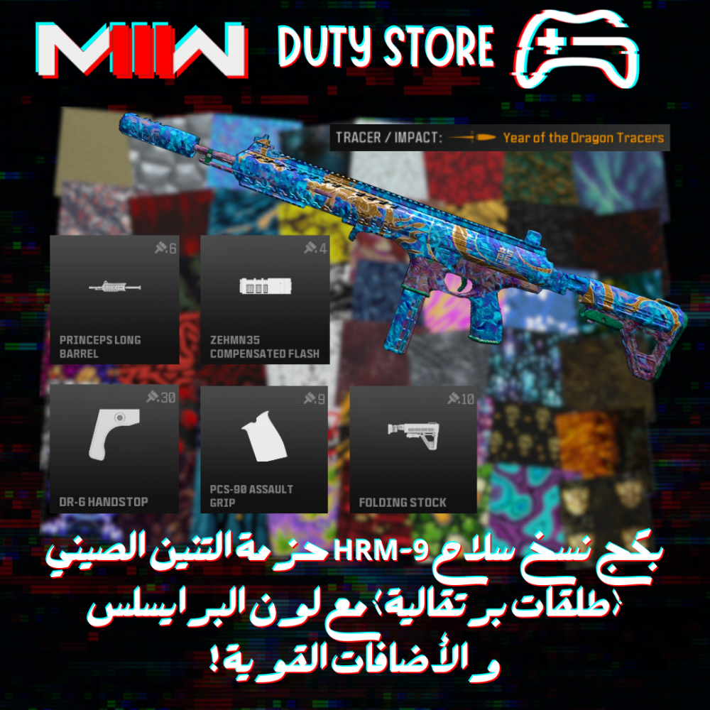 بكج نسخ سلاح HRM-9 حزمة التنين الصيني (طلقات برتقالية) مع لون البرايسلس والأضافات القوية ! (جميع المنصات)