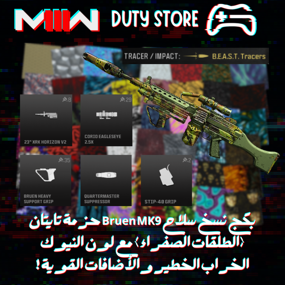 بكج نسخ سلاح Bruen MK9 حزمة تايتان (الطلقات الصفراء) مع لون النيوك الخراب الخطير والأضافات القوية ! (جميع المنصات)