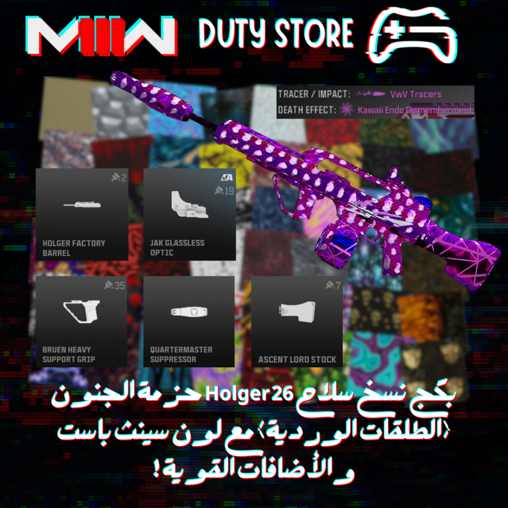 بكج نسخ سلاح Holger 26 حزمة الجنون (الطلقات الوردية) مع لون سينث باست والأضافات القوية ! (جميع المنصات)