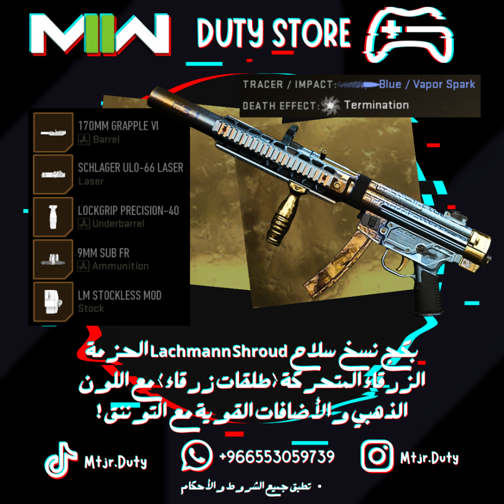 بكج نسخ سلاح Lachmann Shroud الحزمة الزرقاءالمتحركة (طلقات زرقاء) مع اللون الذهبي والأضافات القوية مع التوننق !