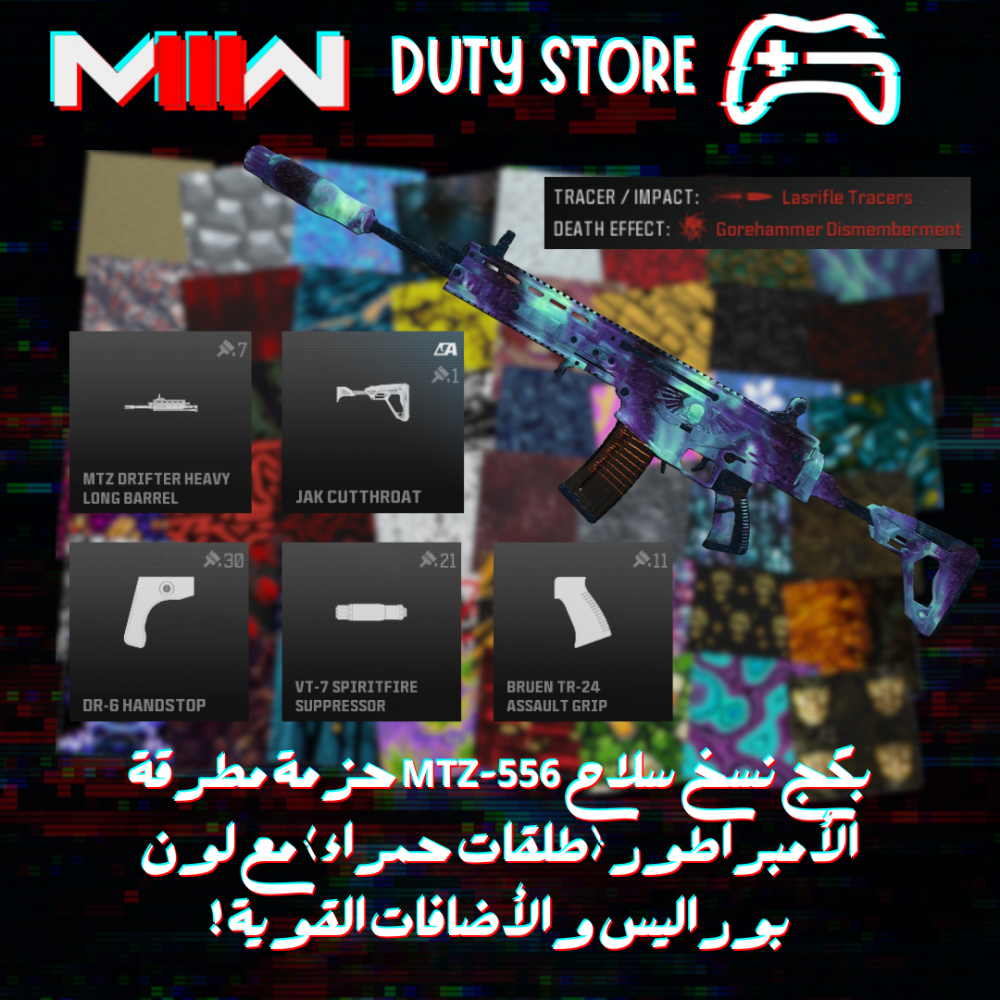 بكج نسخ سلاح MTZ-556 حزمة مطرقة الأمبراطور (طلقات حمراء) مع لون بوراليس والأضافات القوية ! (جميع المنصات)