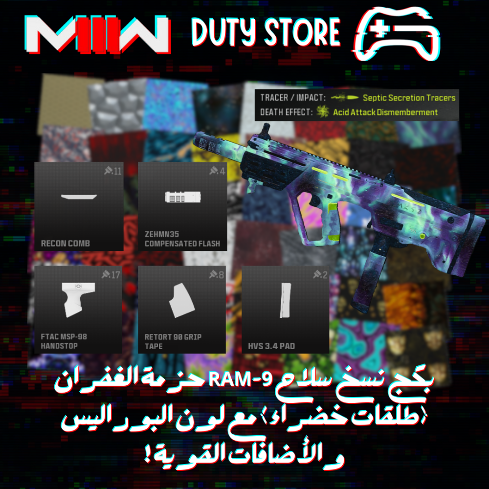 بكج نسخ سلاح RAM-9 حزمة الغفران (طلقات خضراء) مع لون البوراليس والأضافات القوية ! (جميع المنصات)