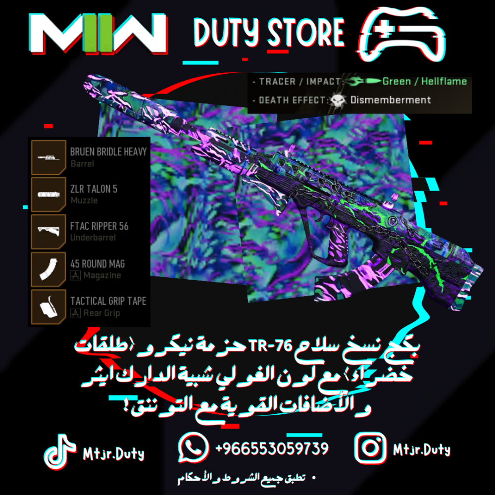 بكج نسخ سلاح TR-76 حزمة نيكرو (طلقات خضراء) مع لون الغولي شبية الدارك ايثر والأضافات القوية مع التوننق !
