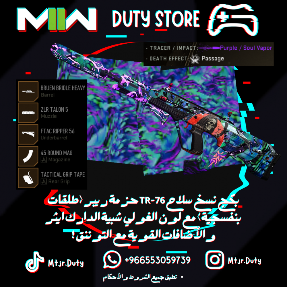 بكج نسخ سلاح TR-76 حزمة ريبر (طلقات بنفسجية) مع لون الغولي شبية الدارك ايثر والأضافات القوية مع التوننق !