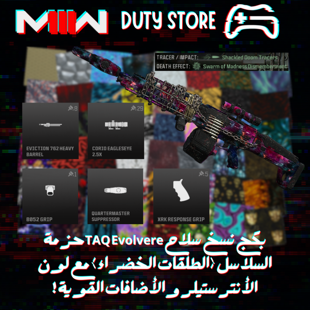 بكج نسخ سلاح TAQ Evolvereحزمة السلاسل (الطلقات الخضراء) مع لون الأنترستيلر والأضافات القوية ! (جميع المنصات)