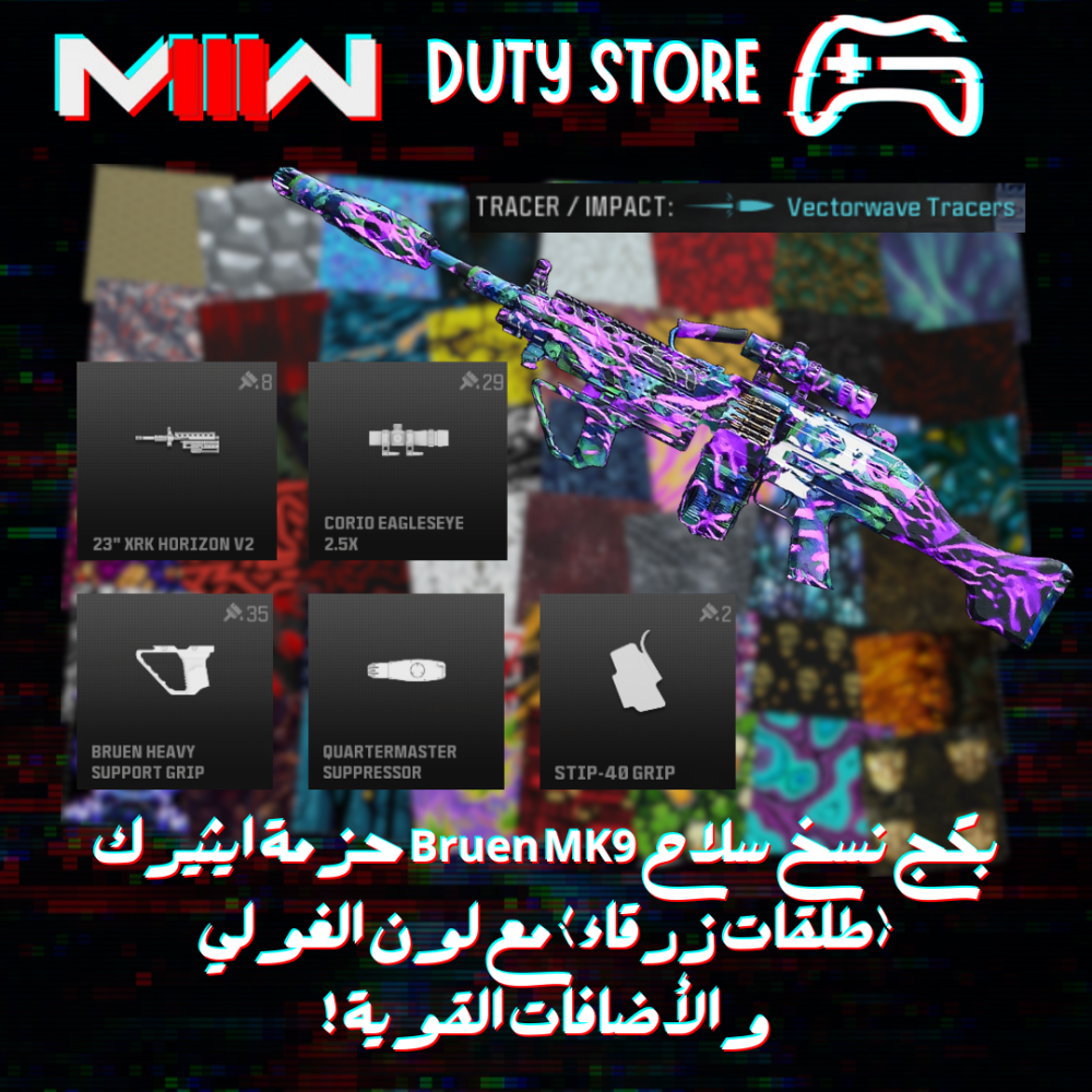 بكج نسخ سلاح Bruen MK9 حزمة ايثيرك (طلقات زرقاء) مع لون الغولي والأضافات القوية ! (جميع المنصات)