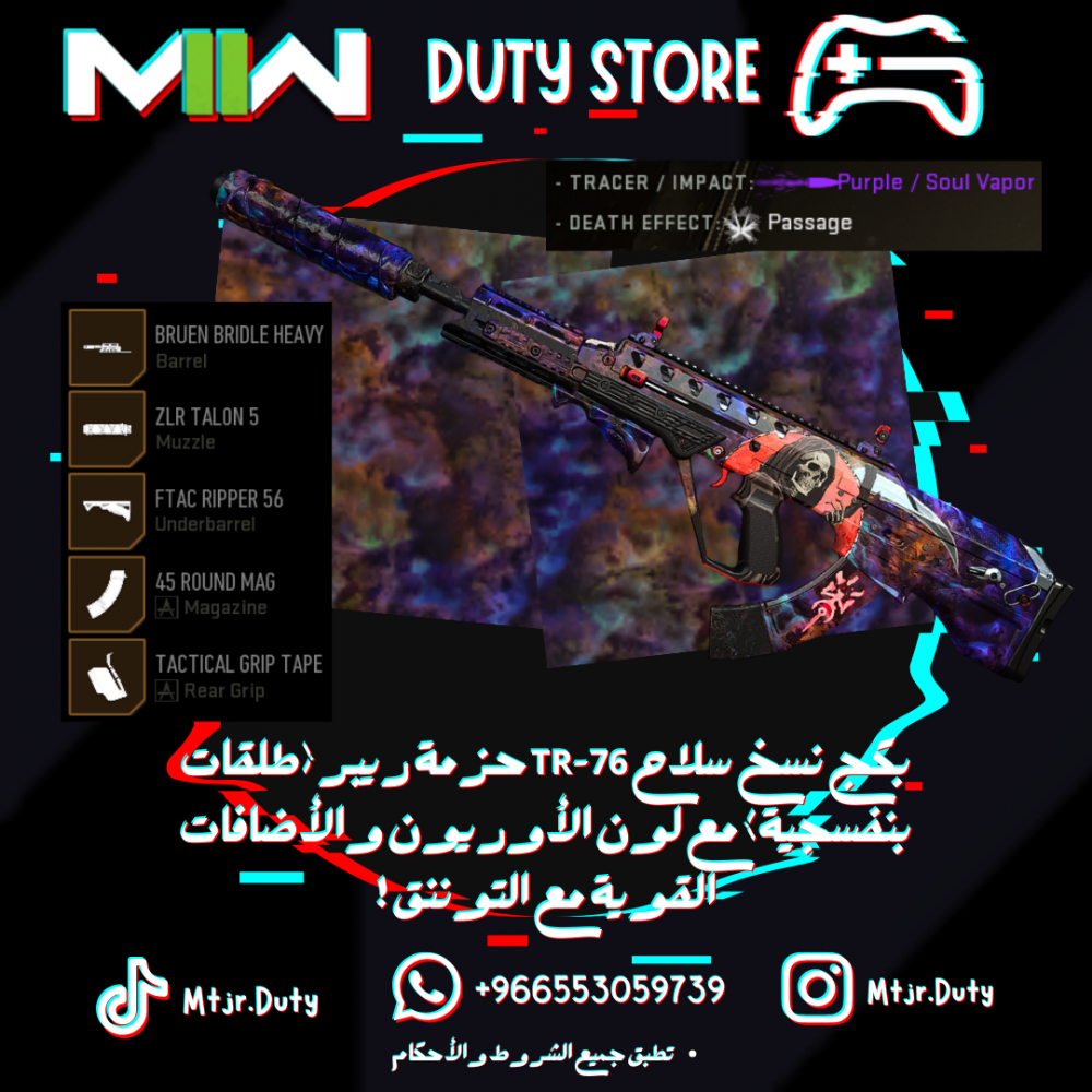 بكج نسخ سلاح TR-76 حزمة ريبر (طلقات بنفسجية) مع لون الأوريون والأضافات القوية مع التوننق !