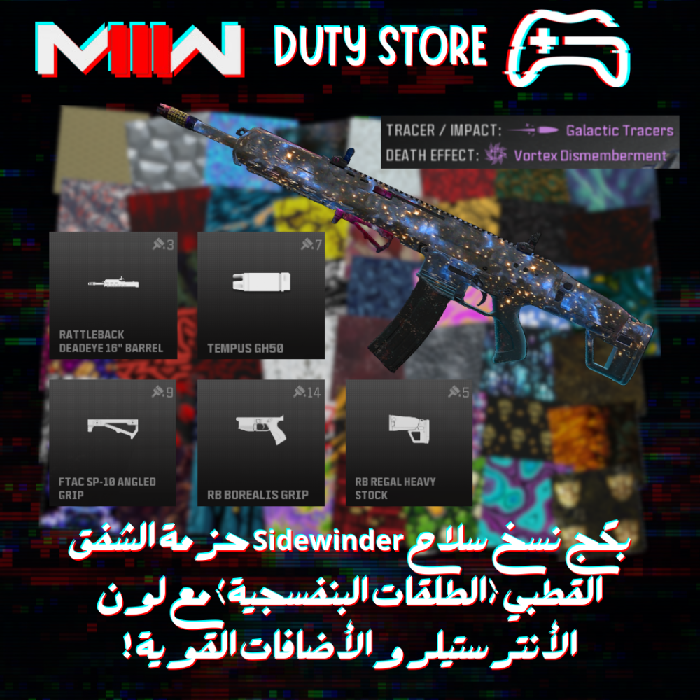 بكج نسخ سلاح Sidewinder حزمة الشفق القطبي (الطلقات البنفسجية) مع لون الأنترستيلر والأضافات القوية ! (جميع المنصات)