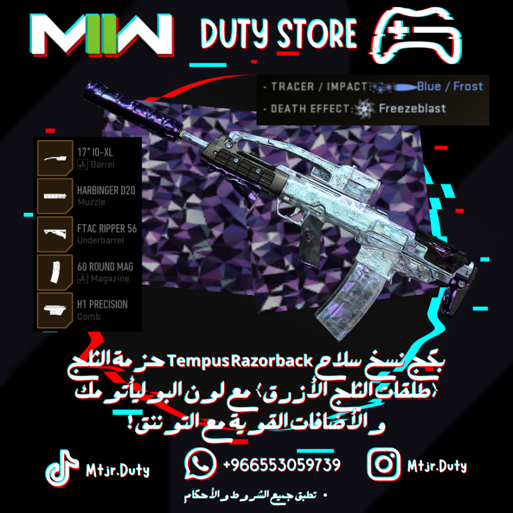 بكج نسخ سلاح Tempus Razorback حزمة الثلج (طلقات الثلج الأزرق) مع لون البوليأتومك والأضافات القوية مع التوننق !