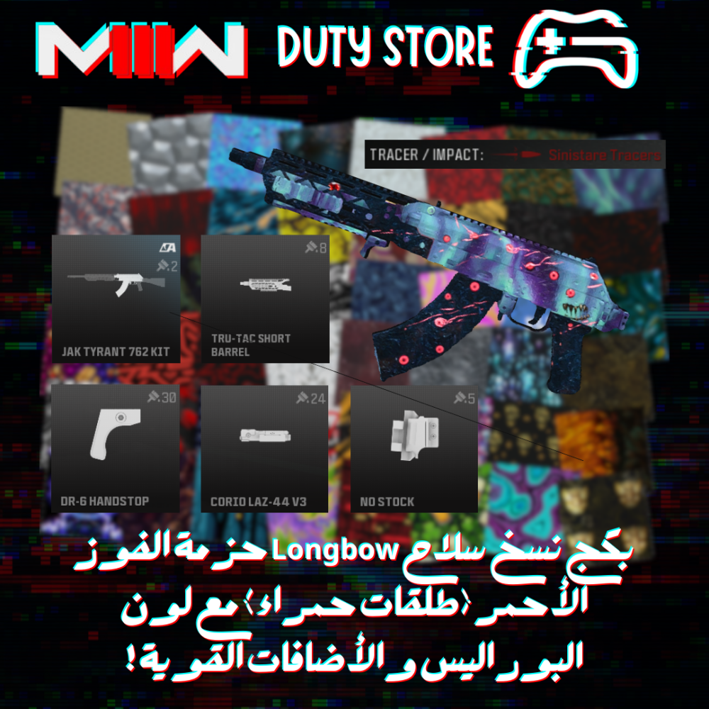 بكج نسخ سلاح Longbow حزمة الفوز الأحمر (طلقات حمراء) مع لون البوراليس والأضافات القوية ! (جميع المنصات)