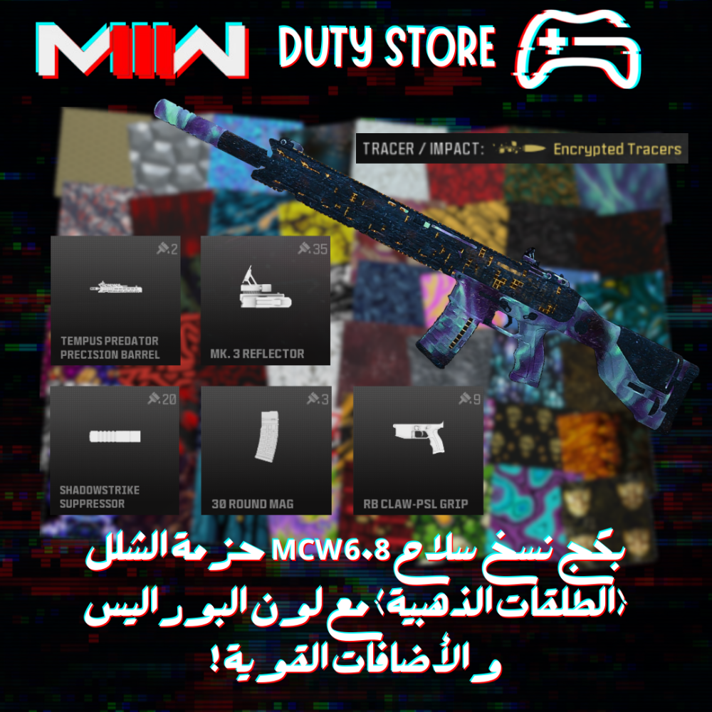 بكج نسخ سلاح MCW 6.8 حزمة الشلل (الطلقات الذهبية) مع لون البوراليس والأضافات القوية ! (جميع المنصات)