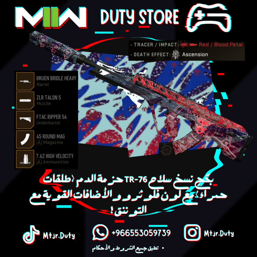 بكج نسخ سلاح TR-76 حزمة الدم (طلقات حمراء) مع لون فلو ثرو والأضافات القوية مع التوننق !