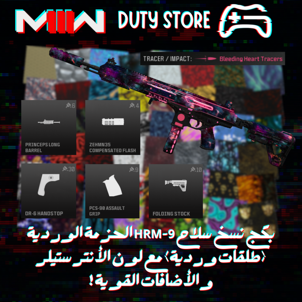 بكج نسخ سلاح HRM-9 الحزمة الوردية (طلقات وردية) مع لون الأنترستيلر والأضافات القوية ! (جميع المنصات)