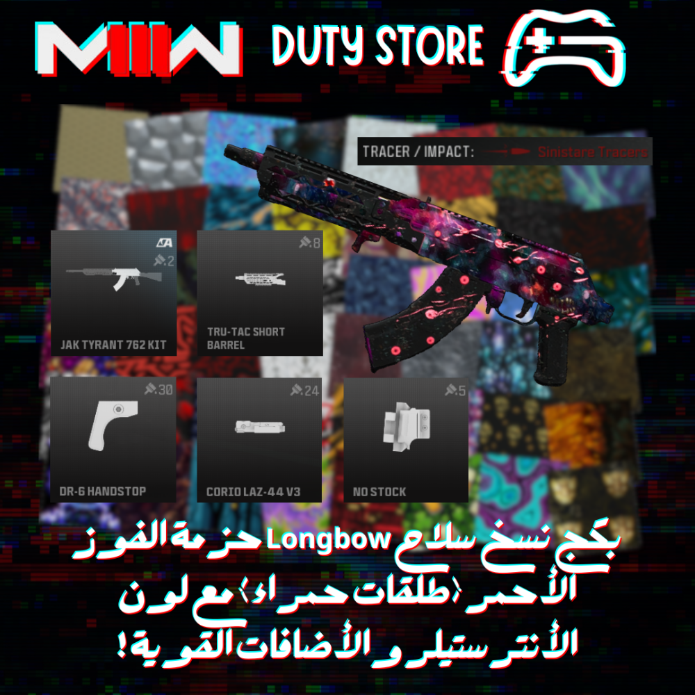 بكج نسخ سلاح Longbow حزمة الفوز الأحمر (طلقات حمراء) مع لون الأنترستيلر والأضافات القوية ! (جميع المنصات)