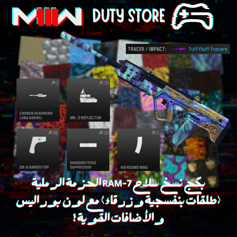 بكج نسخ سلاح RAM-7 الحزمة الرملية (طلقات بنفسجية و زرقاء) مع لون بوراليس والأضافات القوية ! (جميع المنصات)