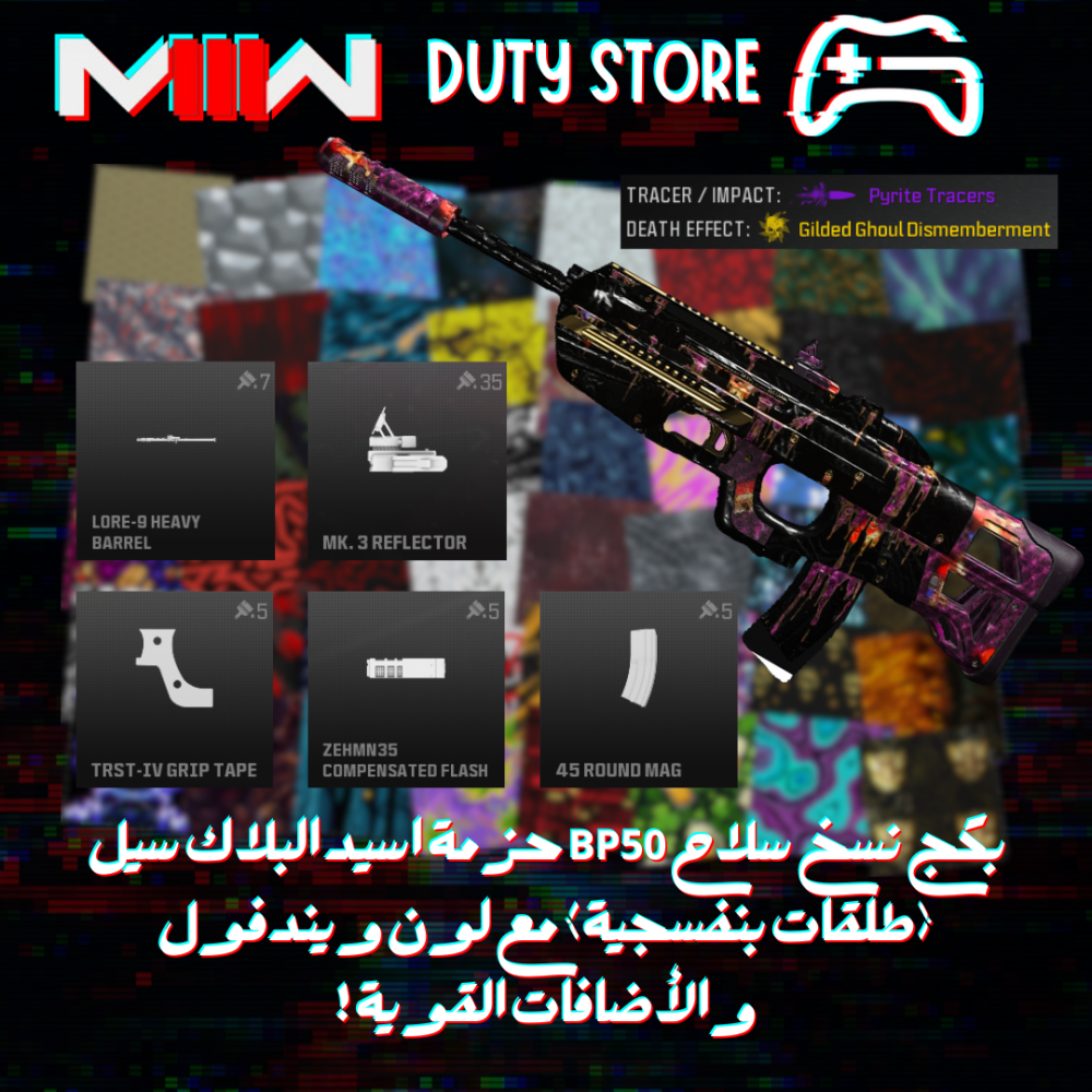 بكج نسخ سلاح BP50 حزمة اسيد البلاك سيل (طلقات بنفسجية) مع لون ويندفول والأضافات القوية ! (جميع المنصات)