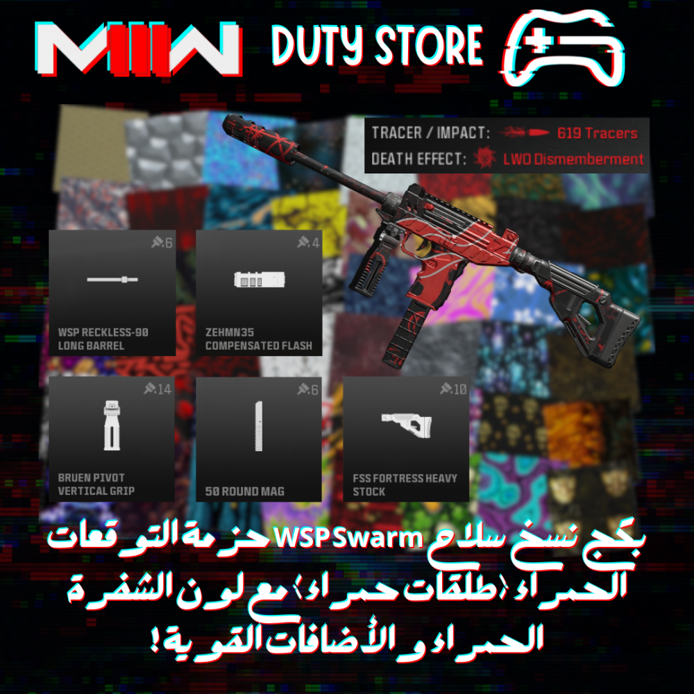 بكج نسخ سلاح WSP Swarm حزمة التوقعات الحمراء (طلقات حمراء) مع لون الشفرة الحمراء والأضافات القوية ! (جميع المنصات)