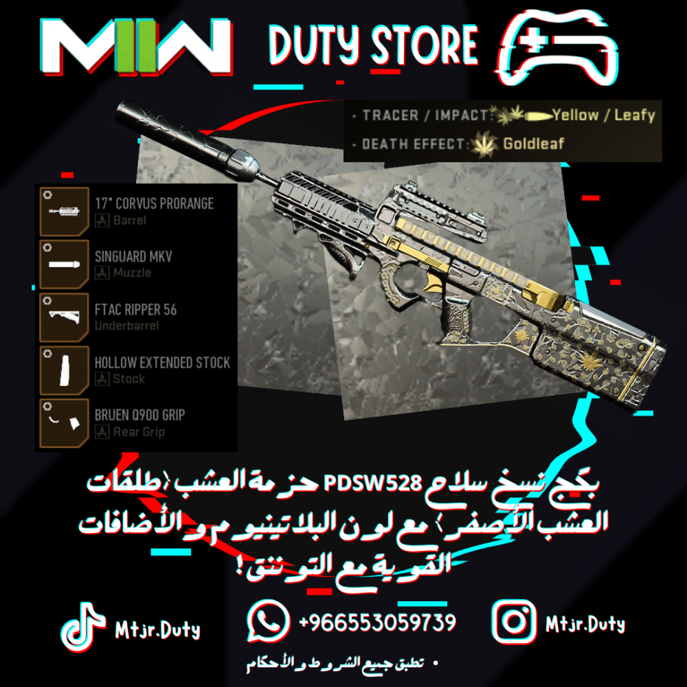 بكج نسخ سلاح PDSW 528 حزمة العشب (طلقات العشب الأصفر) مع لون البلاتينيوم والأضافات القوية مع التوننق !