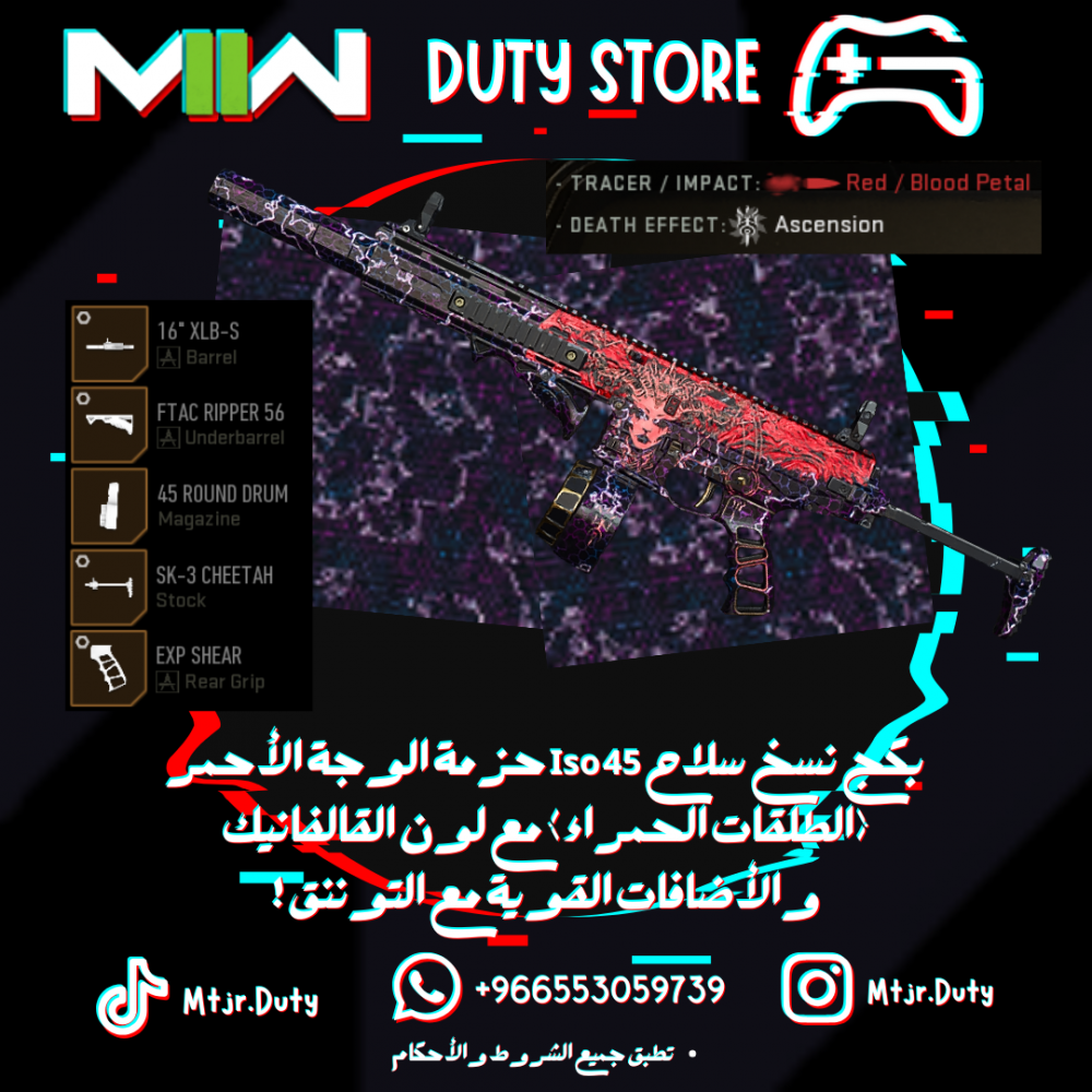 بكج نسخ سلاح Iso 45 حزمة الوجة الأحمر (الطلقات الحمراء) مع لون القالفانيك والأضافات القوية مع التوننق !