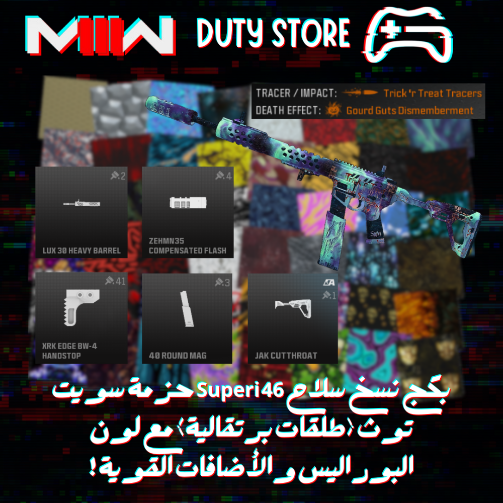 بكج نسخ سلاح Superi 46 حزمة سويت توث (طلقات برتقالية) مع لون البوراليس والأضافات القوية ! (جميع المنصات)