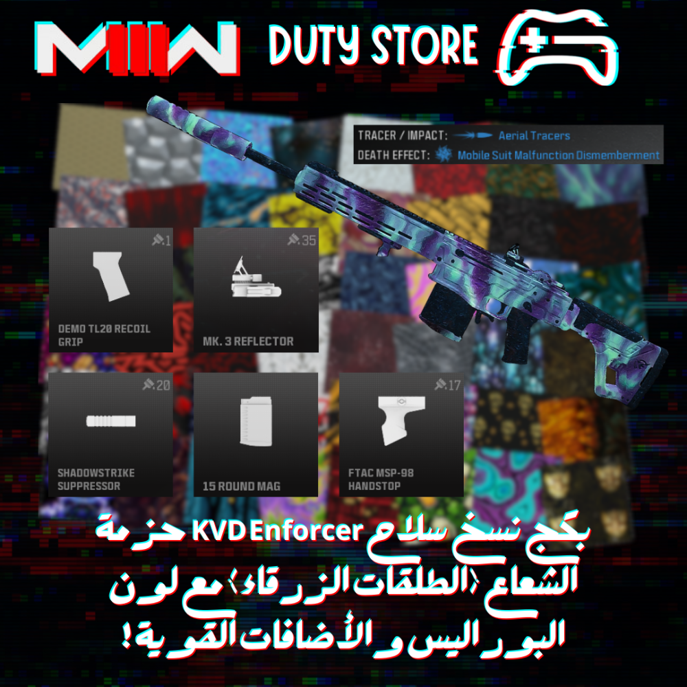 بكج نسخ سلاح KVD Enforcer حزمة الشعاع (الطلقات الزرقاء) مع لون البوراليس والأضافات القوية ! (جميع المنصات)