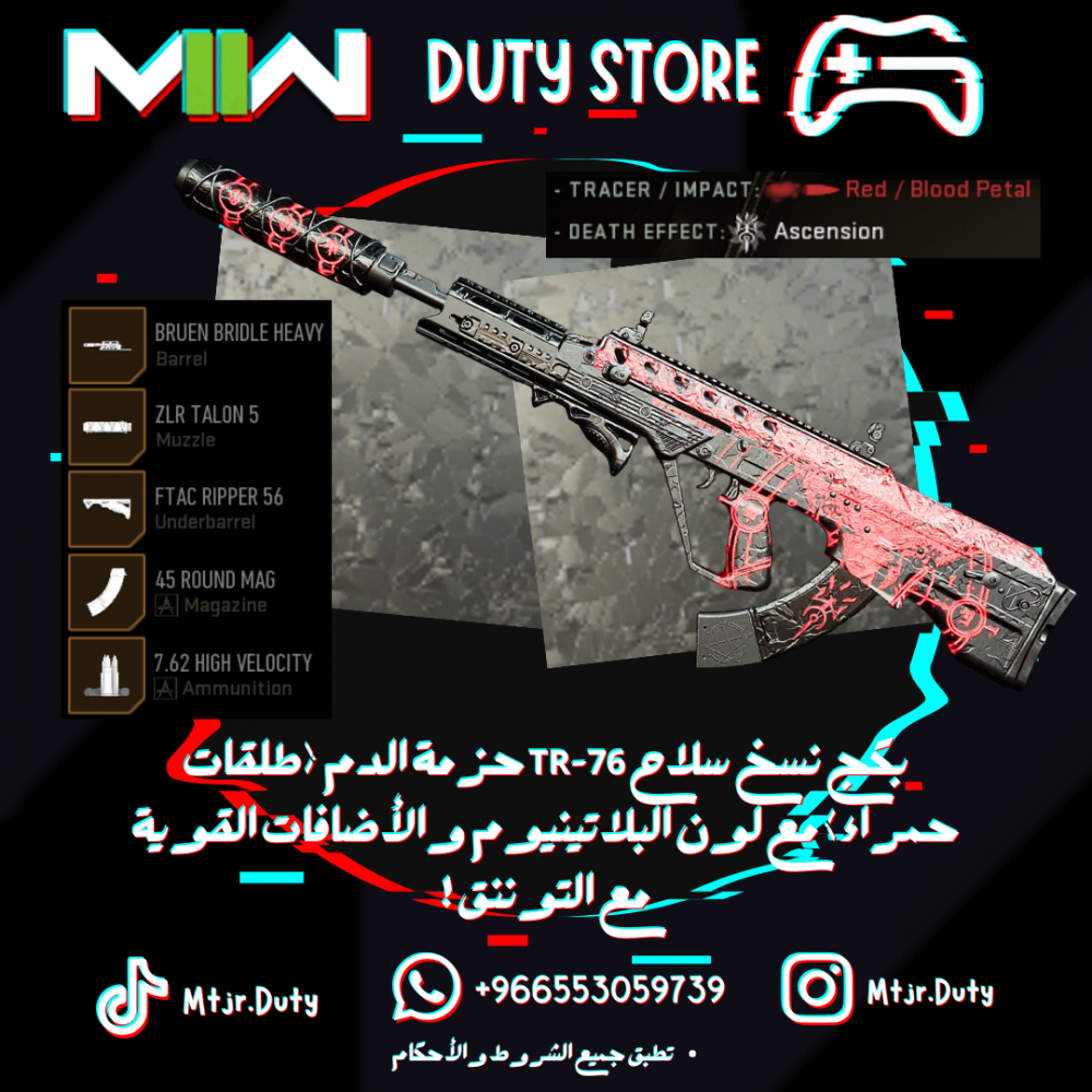 بكج نسخ سلاح TR-76 حزمة الدم (طلقات حمراء) مع لون البلاتينيوم والأضافات القوية مع التوننق !