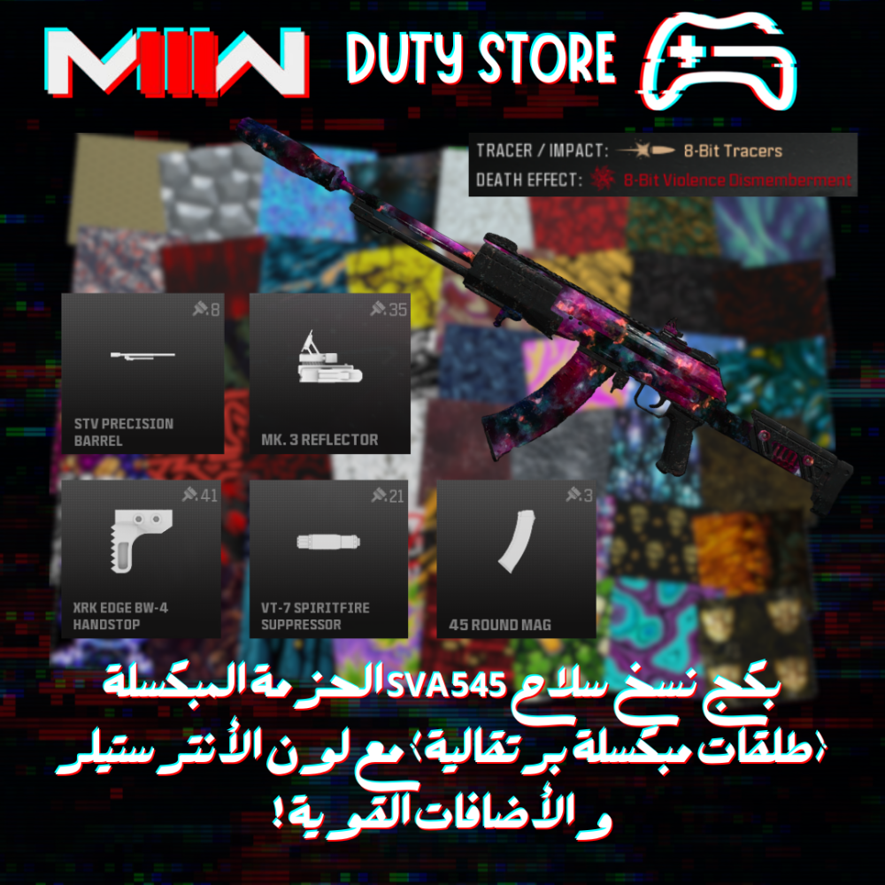 بكج نسخ سلاح SVA 545 الحزمة المبكسلة (طلقات مبكسلة برتقالية) مع لون الأنترستيلر والأضافات القوية ! (جميع المنصات)