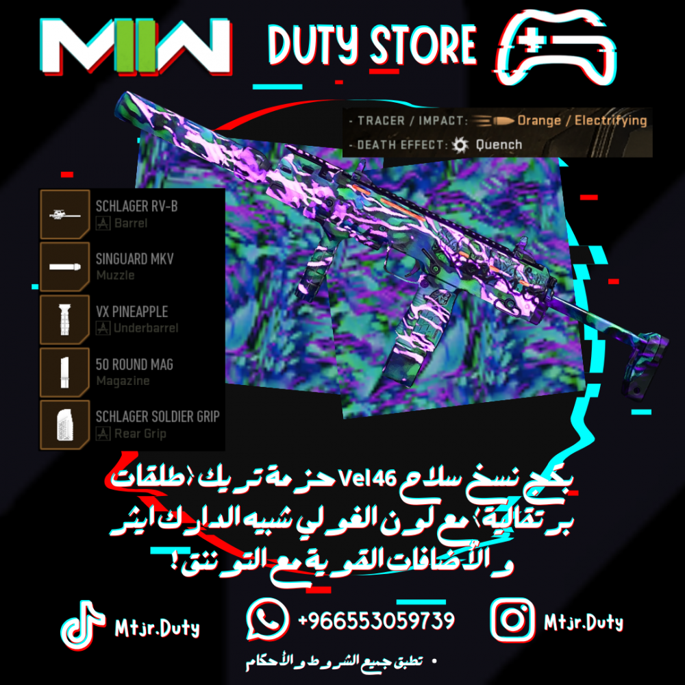 بكج نسخ سلاح Vel 46 حزمة تريك (طلقات برتقالية) مع لون الغولي شبيه الدارك ايثر والأضافات القوية مع التوننق !
