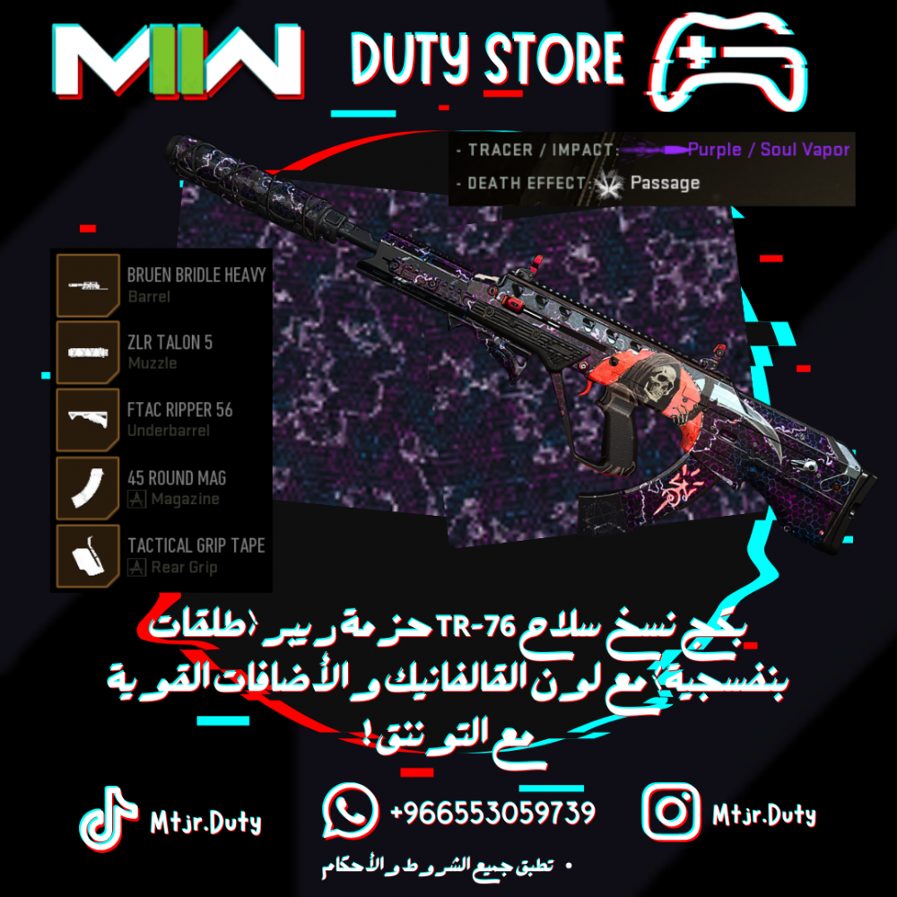 بكج نسخ سلاح TR-76 حزمة ريبر (طلقات بنفسجية) مع لون القالفانيك والأضافات القوية مع التوننق !