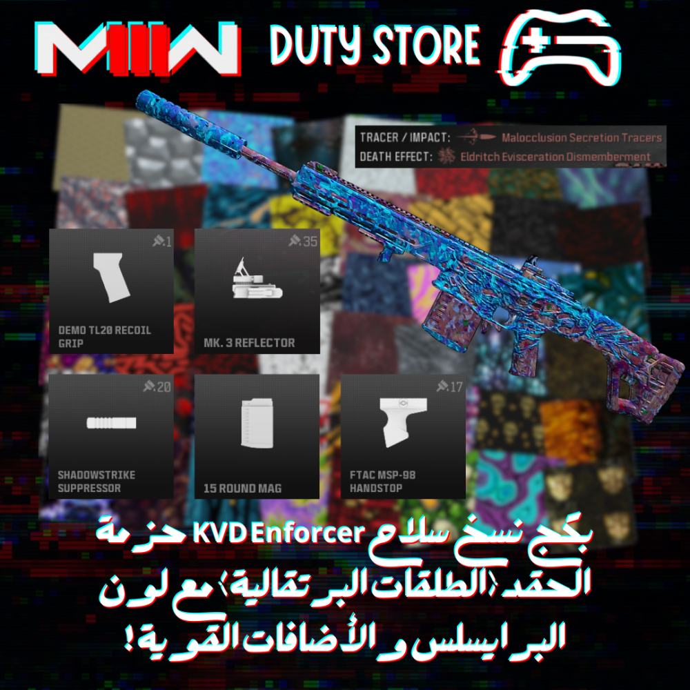 بكج نسخ سلاح KVD Enforcer حزمة الحقد (الطلقات البرتقالية) مع لون البرايسلس والأضافات القوية ! (جميع المنصات)