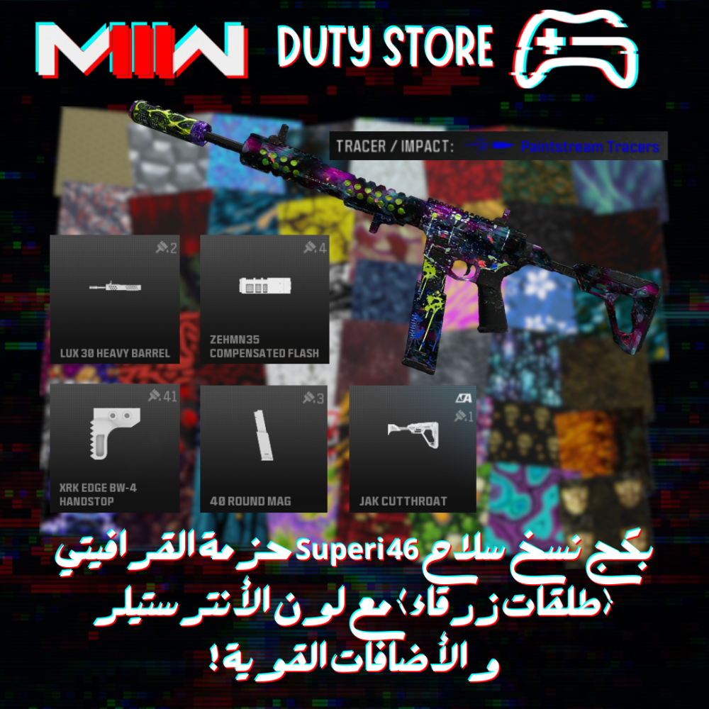 بكج نسخ سلاح Superi 46 حزمة القرافيتي (طلقات زرقاء) مع لون الأنترستيلر والأضافات القوية ! (جميع المنصات)