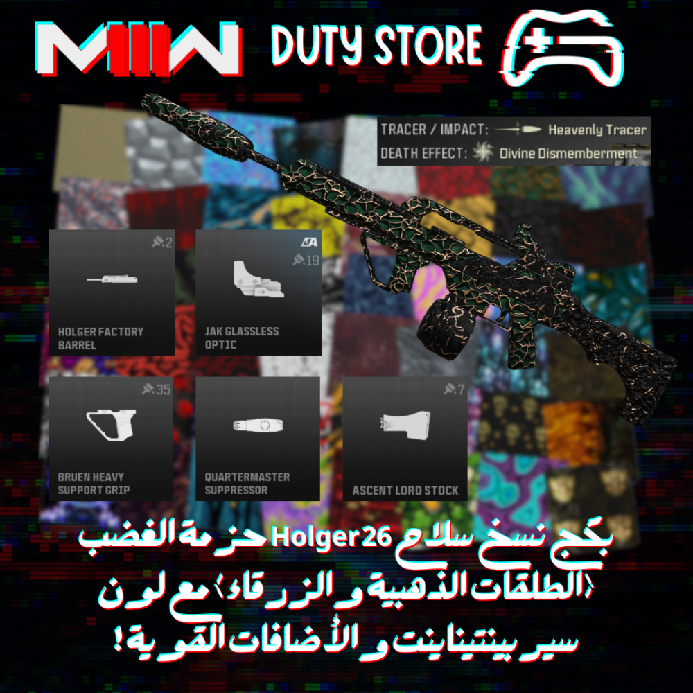 بكج نسخ سلاح Holger 26 حزمة الغضب (الطلقات الذهبية والزرقاء) مع لون سيربينتيناينت والأضافات القوية ! (جميع المنصات)