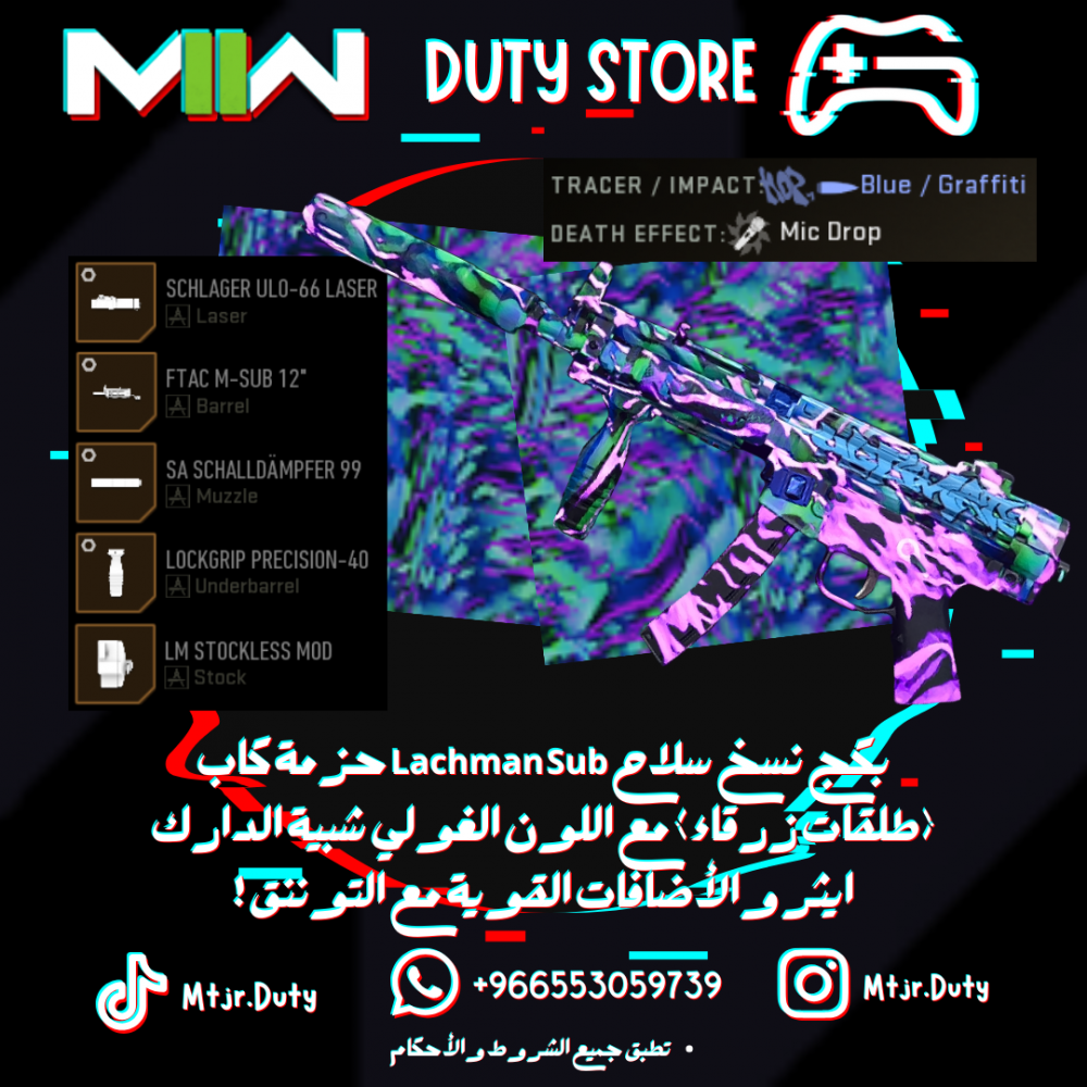 بكج نسخ سلاح Lachman Sub حزمة كاب (طلقات زرقاء) مع اللون الغولي شبية الدارك ايثر والأضافات القوية مع التوننق !