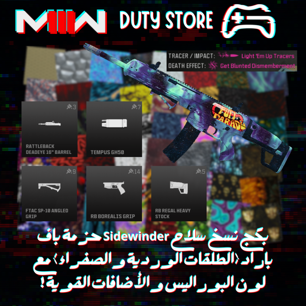 بكج نسخ سلاح Sidewinder حزمة باف باراد (الطلقات الوردية والصفراء) مع لون البوراليس والأضافات القوية ! (جميع المنصات)