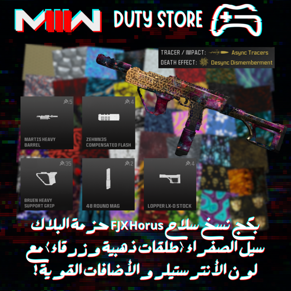 بكج نسخ سلاح FJX Horus حزمة البلاك سيل الصفراء (طلقات ذهبية وزرقاء) مع لون الأنترستيلر والأضافات القوية ! (جميع المنصات)