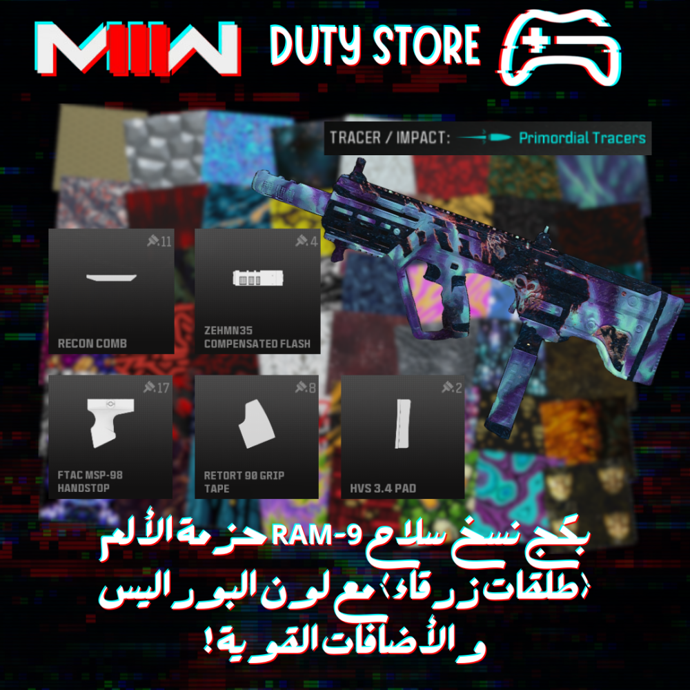 بكج نسخ سلاح RAM-9 حزمة الألم (طلقات زرقاء) مع لون البوراليس والأضافات القوية ! (جميع المنصات)