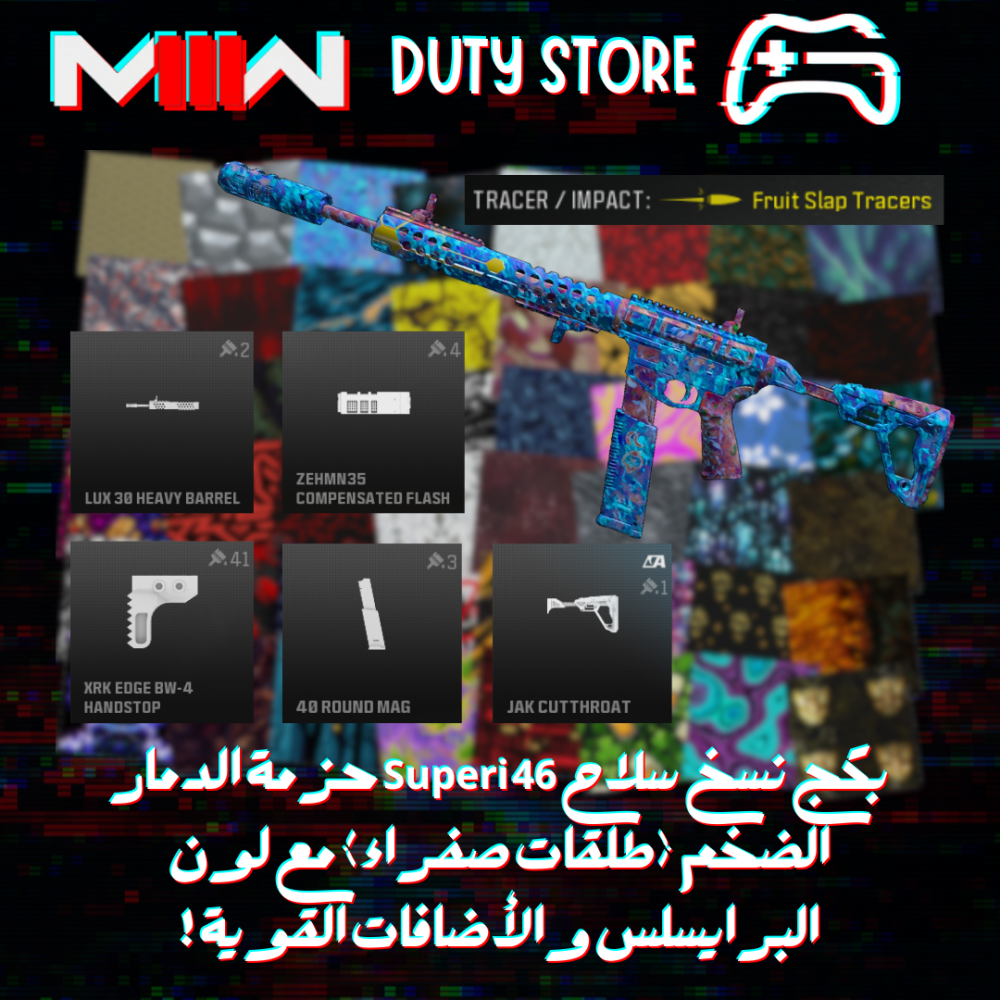 بكج نسخ سلاح Superi 46 حزمة الدمار الضخم (طلقات صفراء) مع لون البرايسلس والأضافات القوية ! (جميع المنصات)