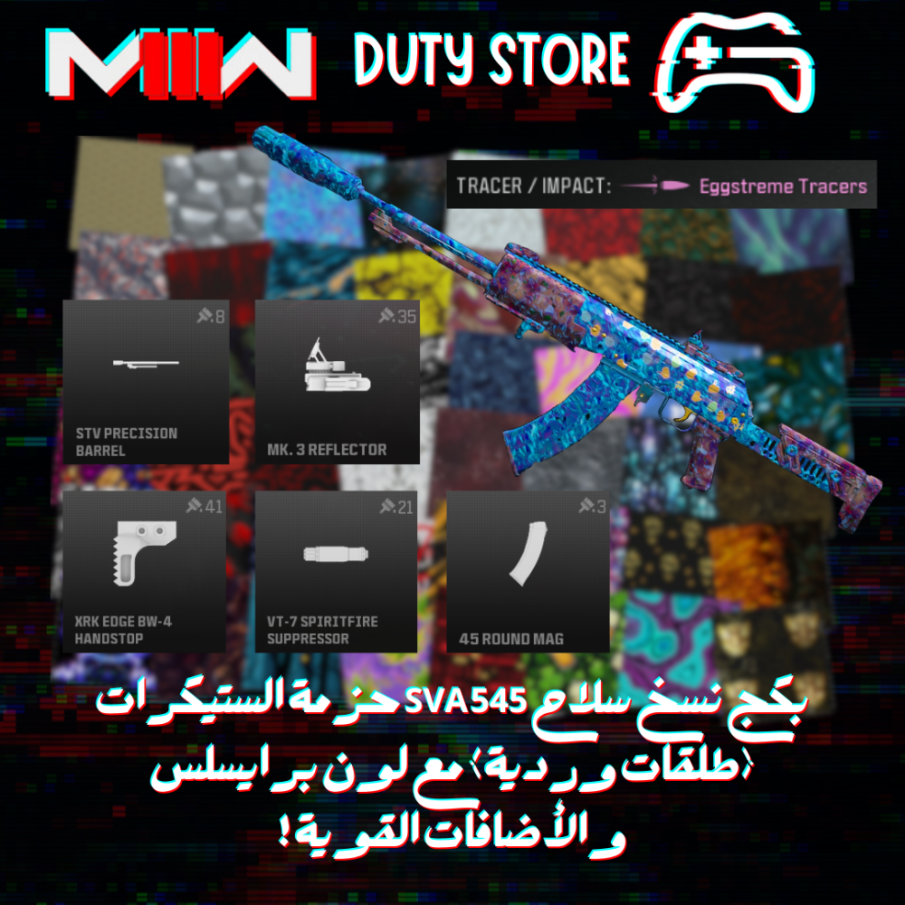 بكج نسخ سلاح SVA 545 حزمة الستيكرات (طلقات وردية) مع لون برايسلس والأضافات القوية ! (جميع المنصات)