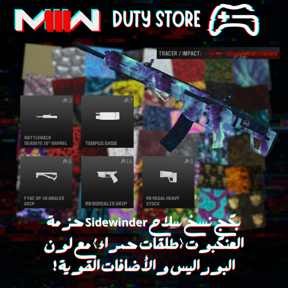 بكج نسخ سلاح Sidewinder حزمة العنكبوت (طلقات حمراء) مع لون البوراليس والأضافات القوية ! (جميع المنصات)